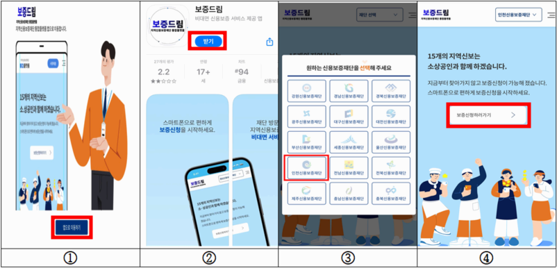 * 앱설치 및 이용 관련 사항은 인천신용보증재단 홈페이지를 참고하시면 됩니다.