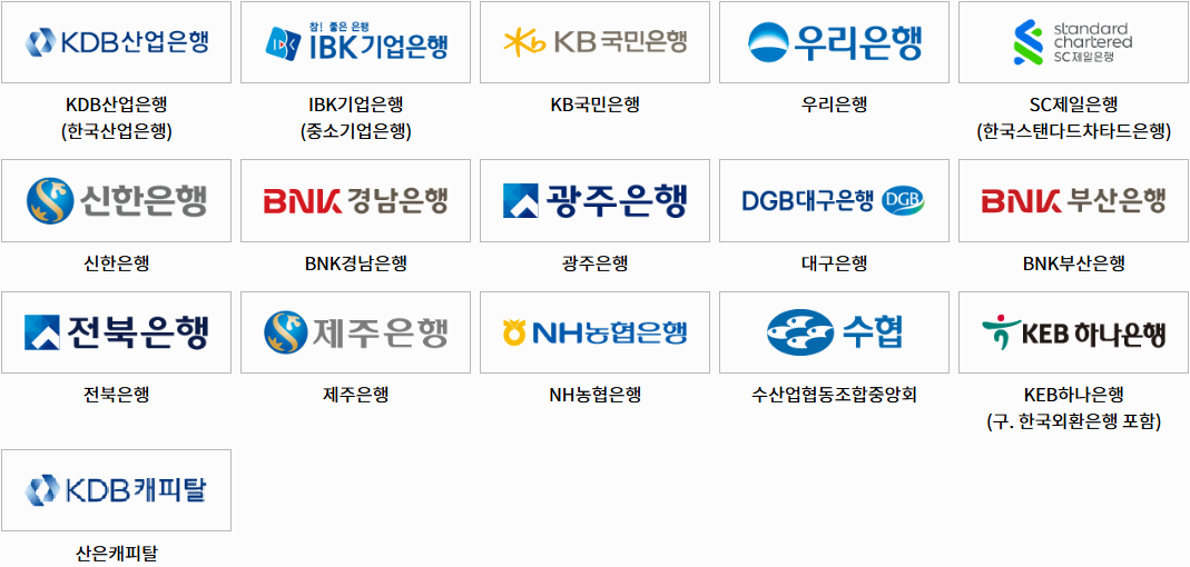 ○ 취급은행 (16개) 아래 금융기관 중 자금 신청업체(자)가 자율적으로 선정하여 신청하시면 됩니다.