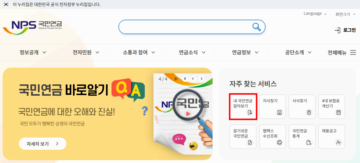 ① 국민연금공단 공식 홈페이지 아래 링크를 통해 접속하기