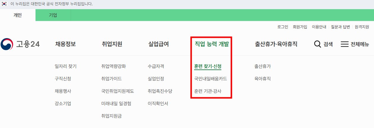 카드 발급이 완료되면 고용24를 통해 원하는 훈련 과정을 신청하고,