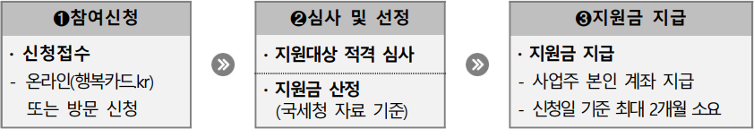 · 지원금 지급은 접수일로부터 최대 2개월 이내 지급하나,