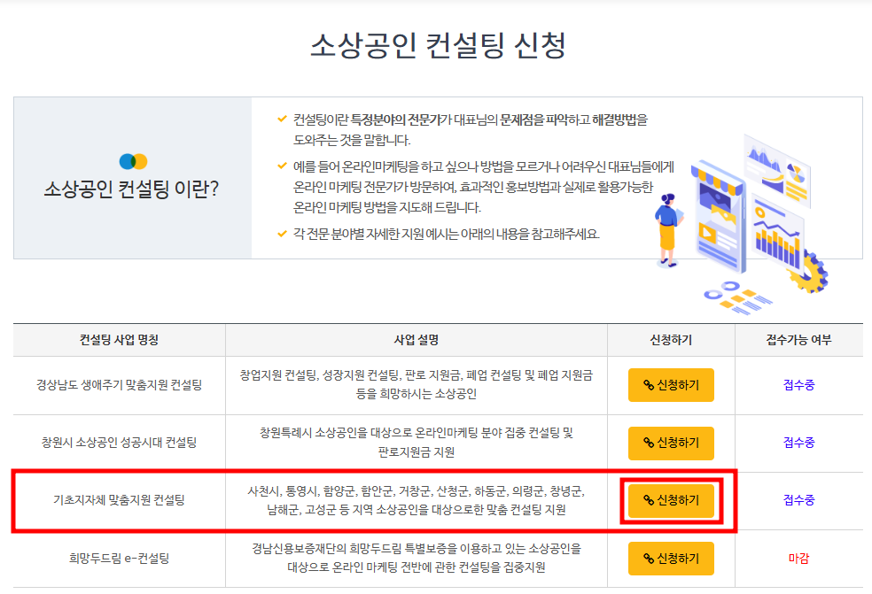 - 소상공인 맞춤 컨설팅 지원 사업 신청 방법