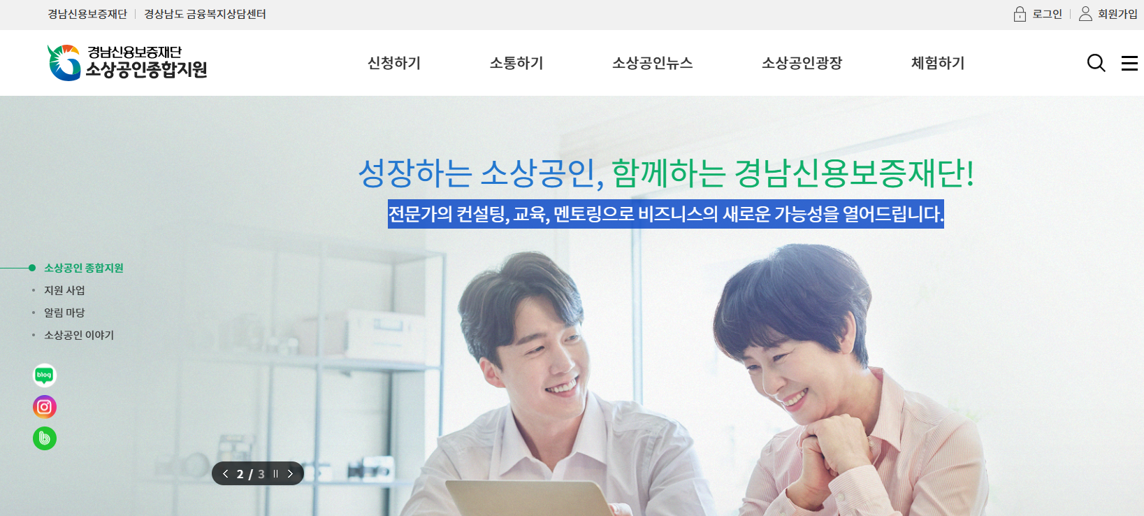 ① 경남신용보증재단 소상공인종합지원 홈페이지 방문하기