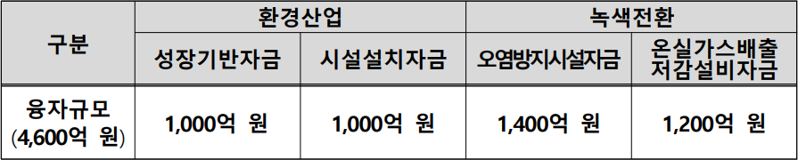 환경산업의 육성과 녹색기술 확산을 위해 마련된 정부 주도의 정책 금융 지원으로,