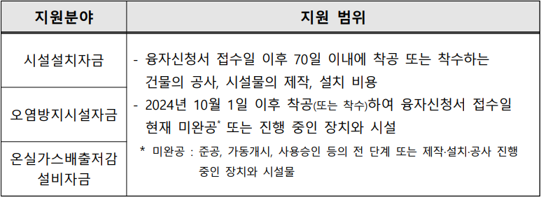 오염방지시설자금 및 온실가스배출저감설비자금 신청가능 합니다
