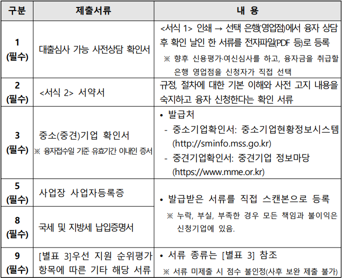③ 융자 신청서 작성 및 사업계획서 및 필수서류 제출