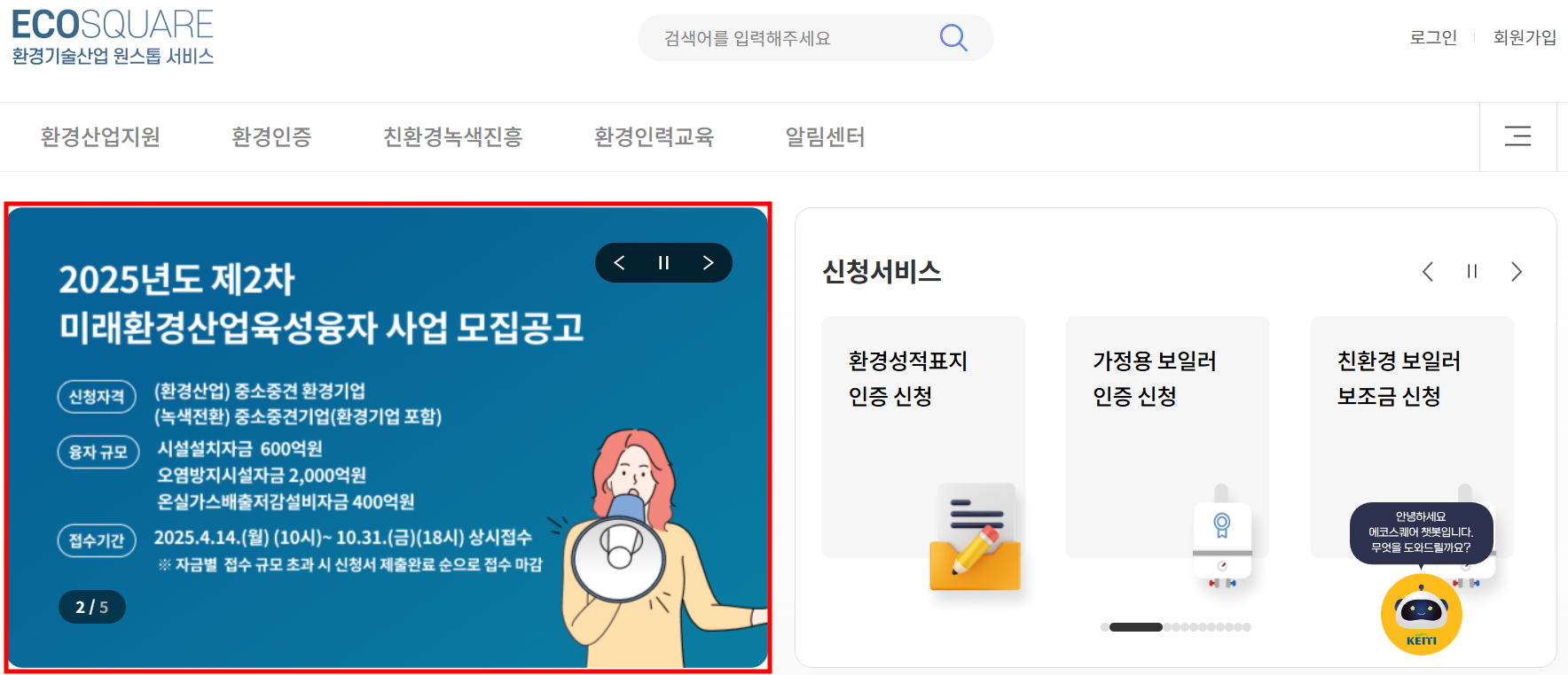 ① 환경기술산업 원스톱 서비스 ECOSQUARE(에코스퀘어) 방문하기