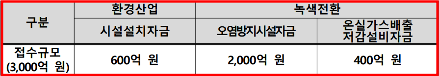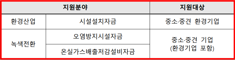 기업의 환경오염물질 방지 시설, 온실가스배출저감설비 설치 자금을