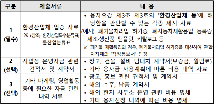 - 미래환경산업육성융자 사업 신청 방법 및 제출서류