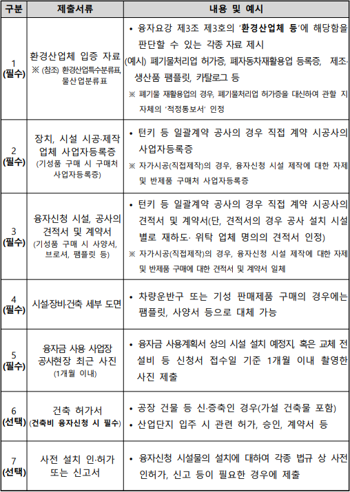 미래환경산업육성융자 사업 신청 방법 및 제출서류