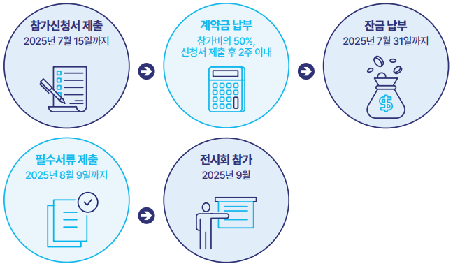 참가신청은 2025년 7월 15일까지 참가신청서 제출, 7월 31일까지 잔금 납부를 기준으로 진행됩니다