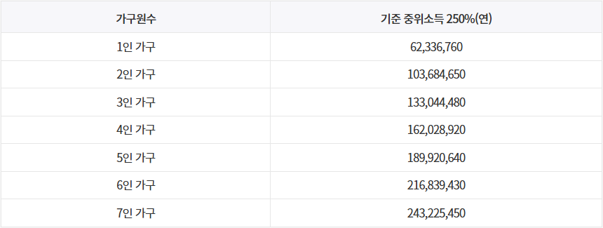 참고: '23년 기준 중위소득 250%'