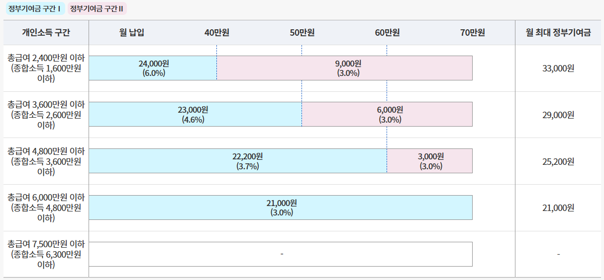 [정부기여금] 납입액에 비례해 소득구간별 정부기여금 지원