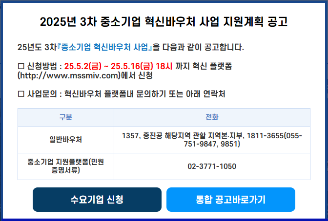 - 중소기업 혁신바우처 3차 지원사업 내용