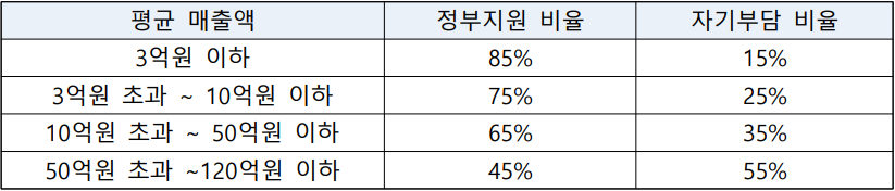· 보조율 - 3개년 평균 매출액 규모에 따라 차등 적용 (45~85%)