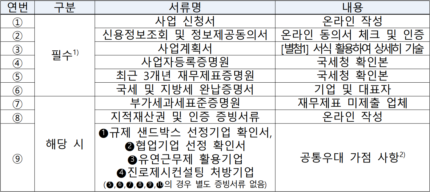 ④사업자등록증명원, ⑤ 최근 3개년 재무제표증명원