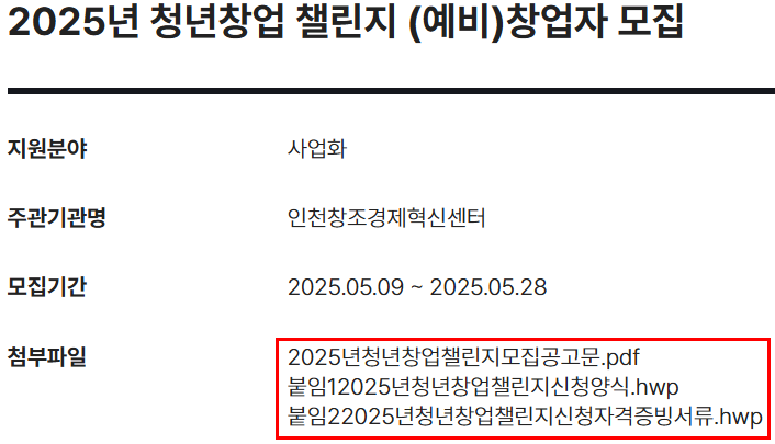 2025년 인천 청년창업 챌린지 지원사업
