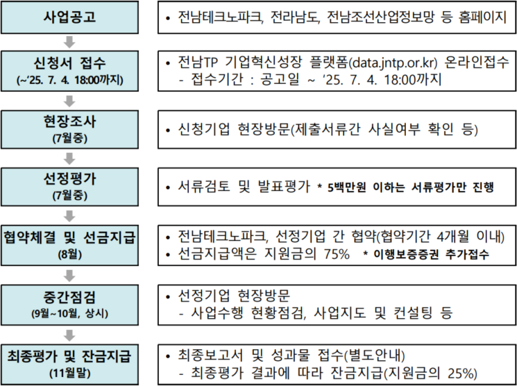 신청은 전남테크노파크 기업혁신성장 플랫폼을 통해 온라인으로 접수 가능합니다