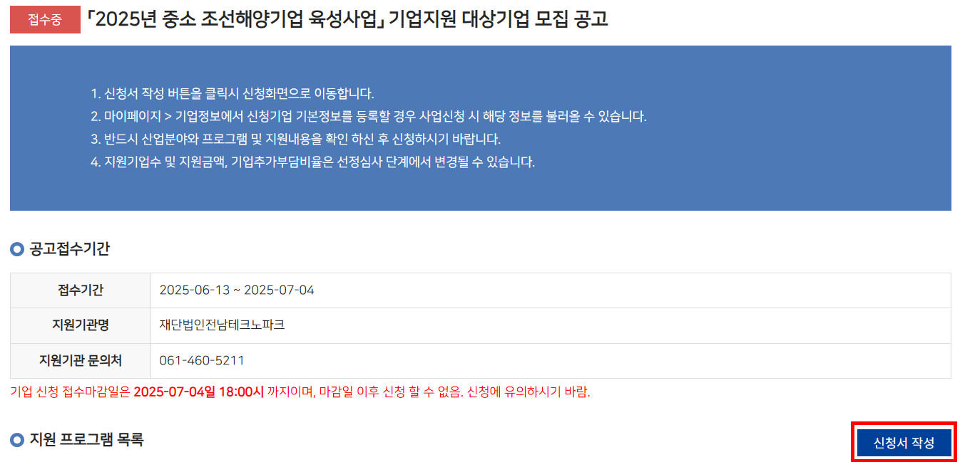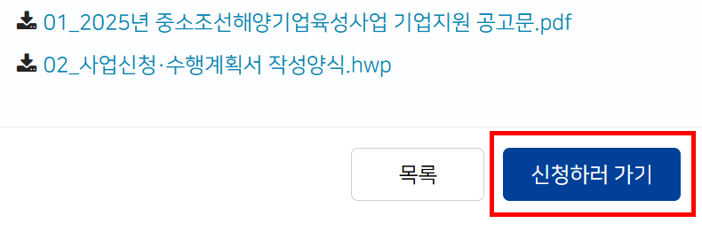 2) 지원사업 → 기업지원사업 → 2025년 중소 조선해양기업 육성사업 → 신청하러 가기