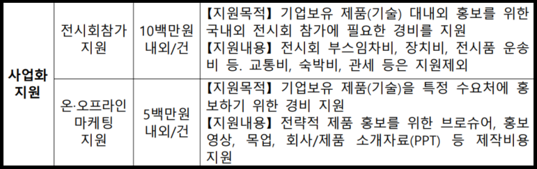 | 사업화지원 | 전시회 참가 | 10백만원 내외/건 |