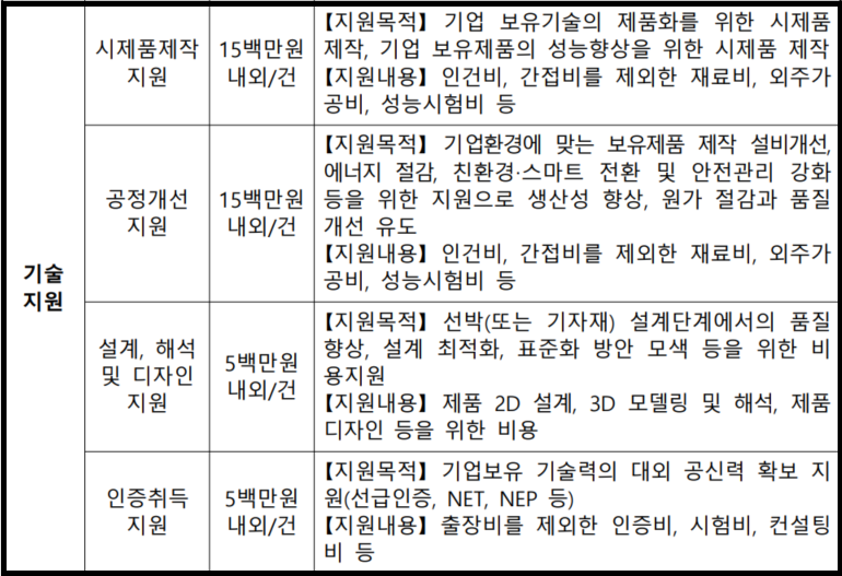 | 기술지원 | 시제품제작 지원 | 15백만원 내외/건 |