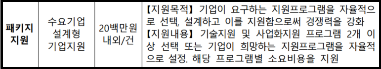 | 패키지지원 | 수요기업 설계형 기업지원 | 20백만원 내외/건 |