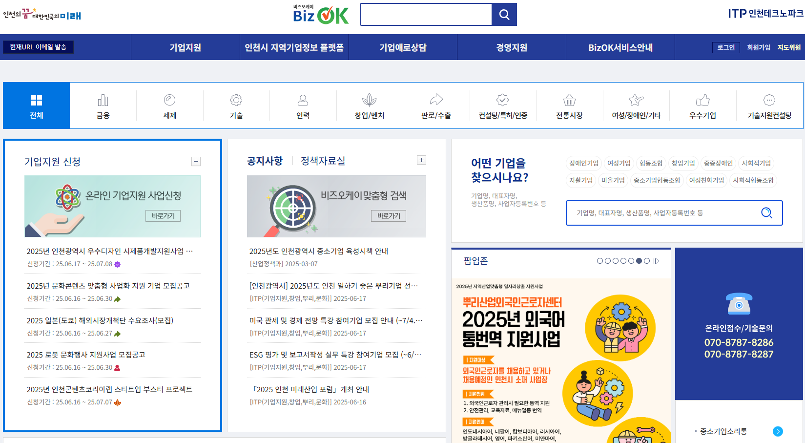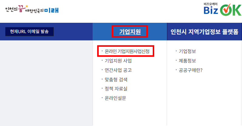 1. 비즈OK 로그인 → 기업지원 → 온라인기업지원사업신청